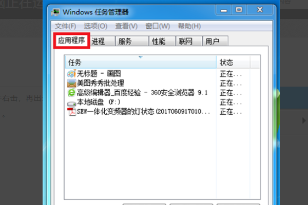 按Ctrl+shift+Esc,弹出任务管理器,在应用程序选项卡里,找到你想关闭的的应用程序,选中后点下方的结束任务即可。有的程序则需要到进程选项卡里,结束相应的进程才行。如果想关闭的应用程序没有停止响应的话,直接用Alt+F4就可以关闭了。