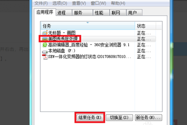 4、这里我以【美图秀秀】为例,选中后点击下方的【结束任务】。