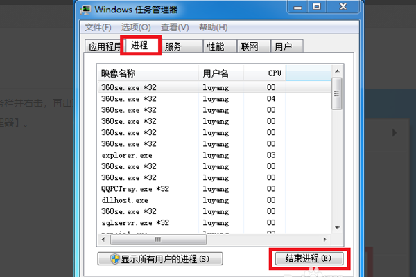 还有一般杀毒软件都不能结束进程,他们有主动防御,要在软件自身界面那里结束。