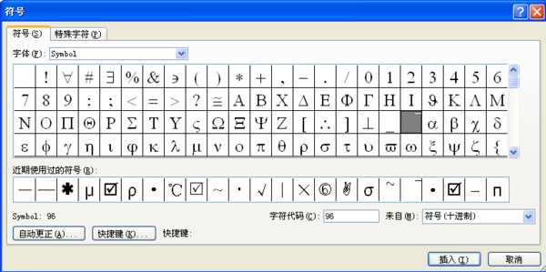 3、弹出符号对话框,在字体处选择Symbol;插入如图所示的符号即可。
