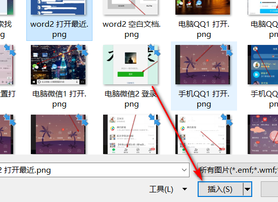 4、从自己的计算机中选择多张图片,并在对话框下部点击“插入”按钮。