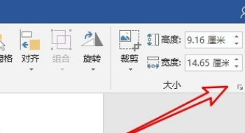 3、接下来在打开的格式工具栏上,点击大小右下角的“展开”按钮。