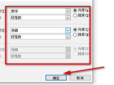 5.在排序设置右侧选择排序的内容,以及排序方向,选择完毕之后点击右下方确定即可完成自动排序。