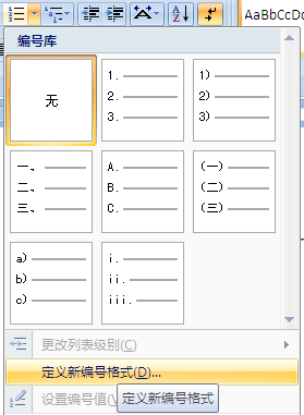 4、还可以选择定义编号格式命令,弹出定义新编号格式对话框,在对话框,可以对编号进行格式设置,如图所示。