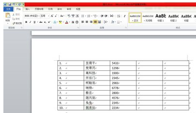 1、打开Word文档,插入一个表格,按照图中在表格里输入一些数字,随便输入一些数据,等待排序