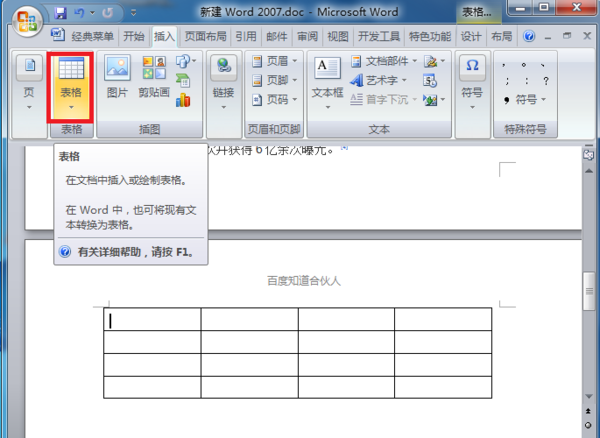 1、首先在电脑上打开一个word文档,然后在“插入”命令页中插入一个表格。