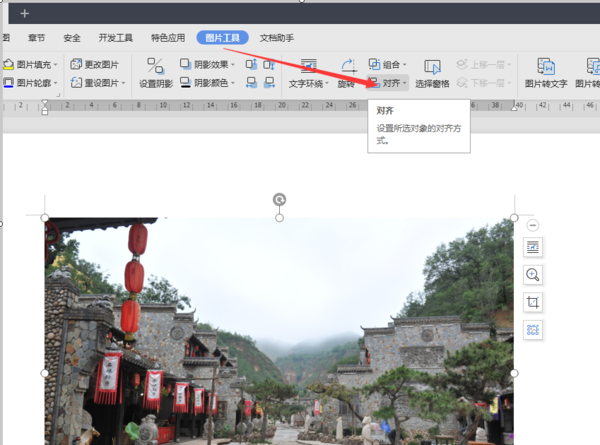 3、点击“图片工具格式”菜单栏下的"对齐”按钮
