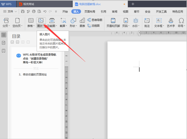 1、打开word2019文档,进入页面点击“插入”图片按钮
