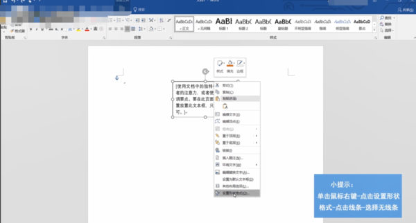 Word文本框的黑边如何去除