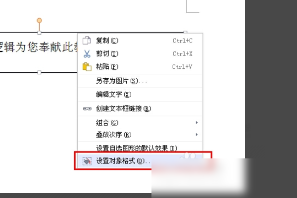 2、在所选边框的任意一侧,右键单击鼠标;选择对象的格式。