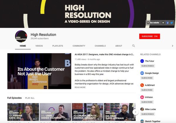 如果你能***看油管,就千万别错过High Resolution频道。 由 Bobby 和 Jared 主持的这档访谈节目,邀请来在Top公司工作的Top设计师们,比如来自Airbnb、Uber、Facebook、eBay 等的设计总监,来给大家分享超实用的设计经验。