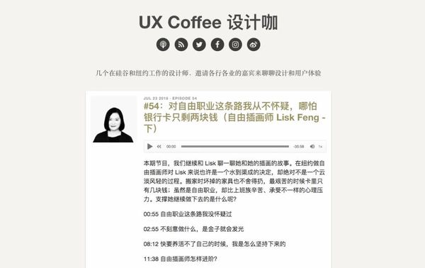 几个在硅谷和纽约工作的设计师,邀请各行各业的嘉宾来聊聊设计和用户体验。聊天氛围轻松愉快,适合茶前饭后的休憩时间听听其他设计师的职业和生活故事。