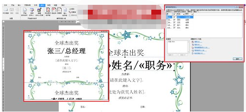 经过六步,就已经在Word 2010中使用邮件合并功能完成了编辑荣誉证书的全部工作,剩下的就是逐张打印荣誉证书了。