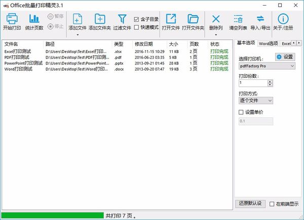 推荐使用“Office批量打印精灵”——Office文档批量打印软件,支持Word、Excel、Powerpoint、PDF等文档的批量打印,且可使用虚拟打印机,将多个Office文档转换为PDF文件。