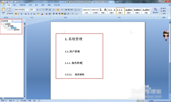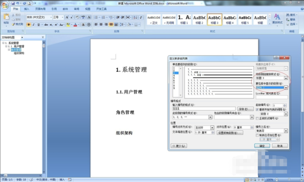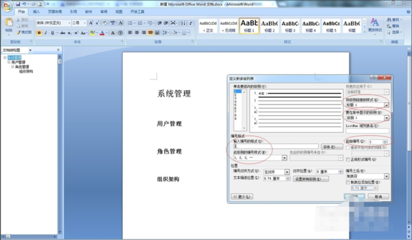 系统管理、用户管理、角色管理、组织架构分别是标题1、标题2、标题3、标题4,现在需要给“系统管理、用户管理、角色管理、组织架构”分别加上编号。预期结果是:1.系统管理1.1.用户管理1.1.1.角色管理1.1.1.1.组织架构