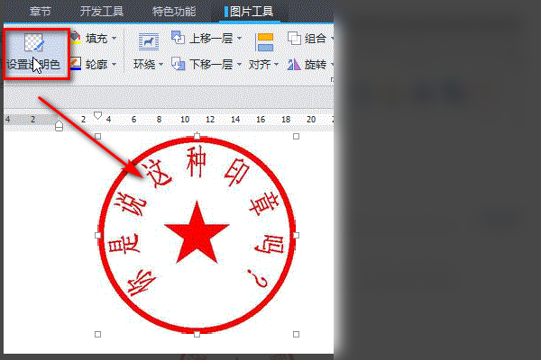 5、选中图片,点击“图片工具”——“设置透明色”,鼠标移动到图片上,左击将图片拖动到文档中间位置,制作完成。