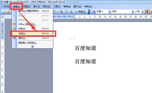 打开word文档,按下键盘上的”Ctrl+A“,或者点击”编辑“,选择”全选“;