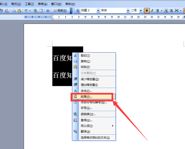 2、选中所需清除制表符内容,点击鼠标右键,在菜单栏中选择段落。