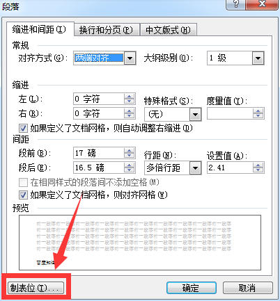 4、在“段落”对话框中点击左下角的“制表位”按钮,如图所示。