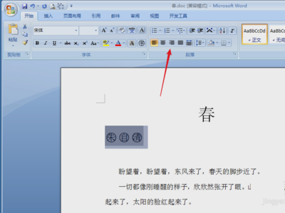 2、居中对齐,选中中间对齐的部分,点击开始,居中对齐按钮。