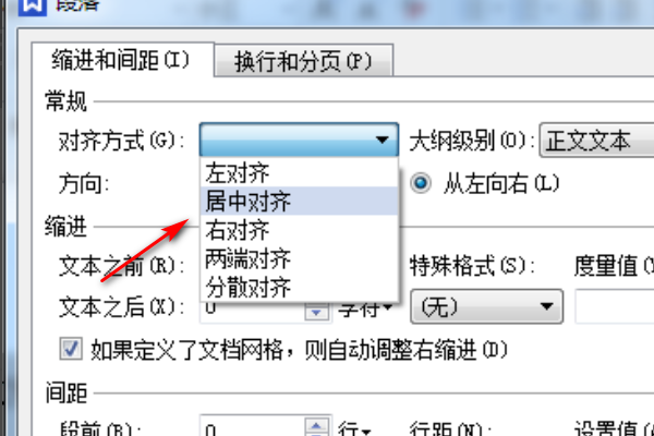 6、如下面页面,根据下拉菜单,选择所需的对齐方式。