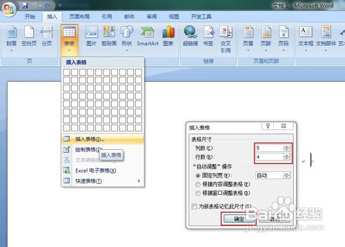 3、在弹出的插入表格窗口,输入需要的列数和行数;