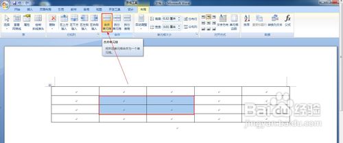 3、选择“表格工具--布局”功能菜单,单击工具栏中的“合并单元格”按钮。