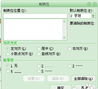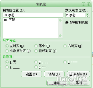 在“制表位位置”中输入具体的字符数,选择对齐方式、前导符,之后点击“设置”,“确定”即可