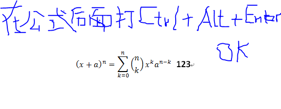 2.在公式和编号之间按下Enter(这一步非常重要,否则会导致第3部无法插入样式分隔符到公编号的左边),将编号弄到下一行: