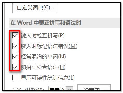 Word 2007 那个检查语法错误的红线,我按照您的方法。可是那两个选项是灰色的 钩钩去不掉 怎么办?