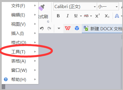 1、首先在打开的word文档中点击左上角的文件位置,并选择其中的“工具”选项。