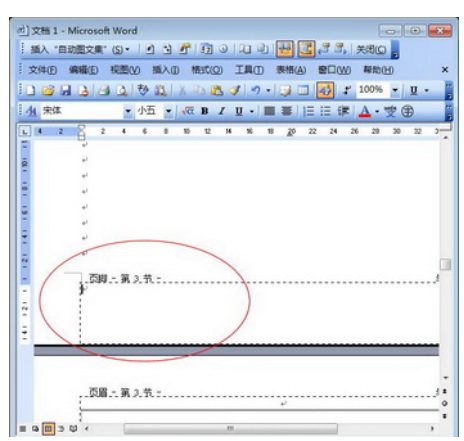 3、选择“视图-页眉和页脚”,并将光标定位于页脚处。