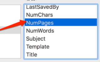 3、在类别中找到【文档信息】,在【文档信息】中选择【NumPages】