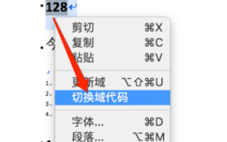 6、右击鼠标选择【切换域代码】,可以看到对应的域代码。