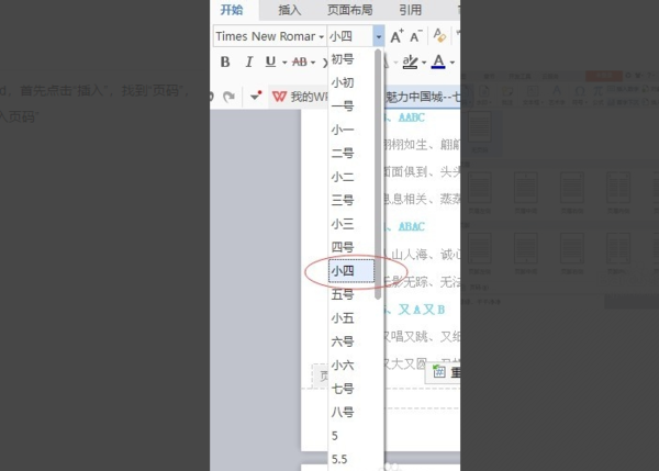 4、如果感觉页码字体显示太小,可以从去选择设置字体大小。
