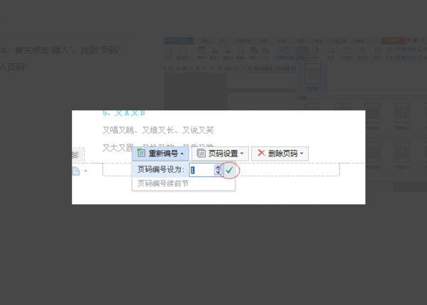 5、重新编辑页码之后,记得点击一下那个绿色的小对勾。