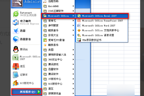 2、第二种方法为在开始菜单启动,依次选择开始,所有程序,Microsofoft Office,Word命令。