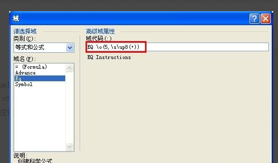 域代码内输入:EQ空格\o(5,\s\up8(•))