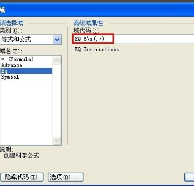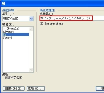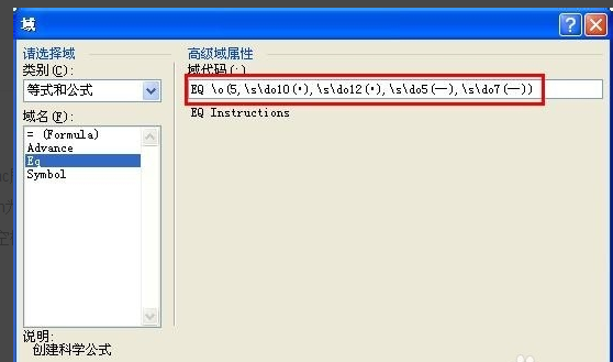 6,域代码内输入:EQ空格\o(5,\s\do10(•),\s\do12(•),\s\do5(—),\s\do7(—))