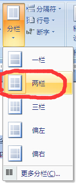 3、全选文档内容,快捷键ctrl+A ,在工具栏中找到‘分栏’选项,选择两栏。如下图所示: