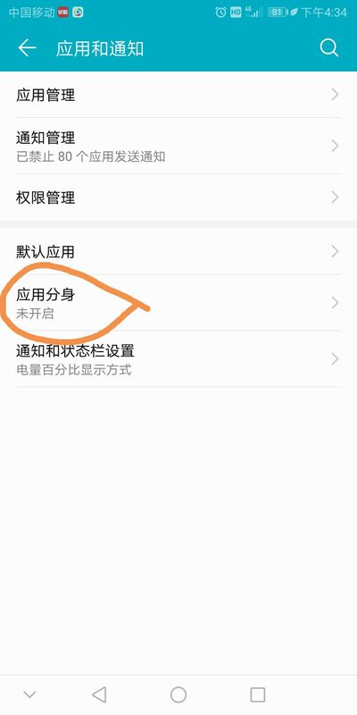 2、打开应用和通知,找到“应用分身”: