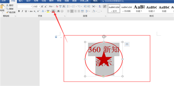 8、输入印章所属部门,而后同样方式设置为颜色和文字环绕方式,而后按住ctrl键,全选,点击组合,将所有的都组合在一起。