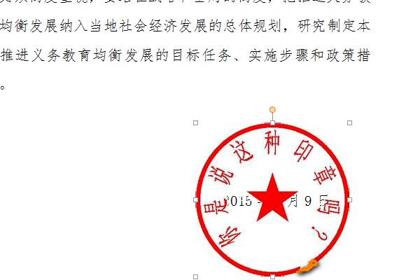 4、按上述操作后,可根据实际调整图片大小与实际一致,即可将印章盖在word文档文字上使用。