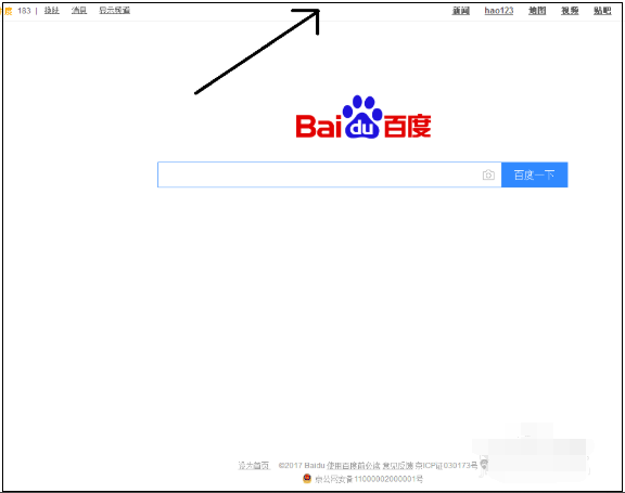2、此时我们将鼠标移动到浏览器上方,如下图箭头所指。