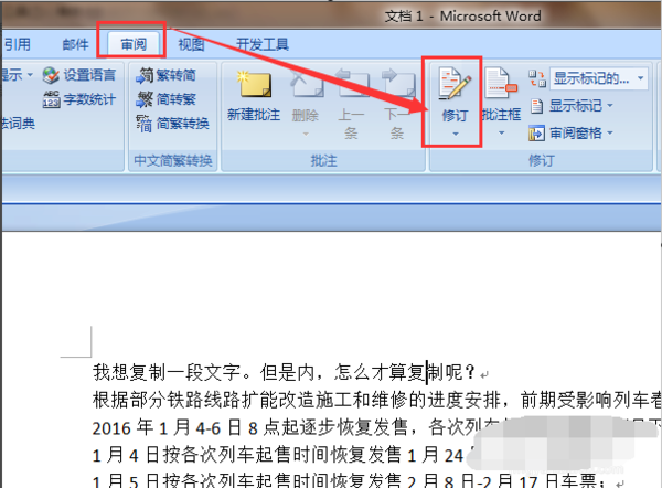 在审阅一项下面,点击修订,然后就可以改了,会自动生成你改动的记录,别人看的时候可以选择接受或不接受修订……