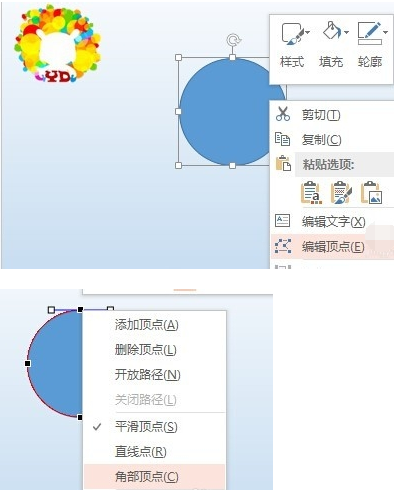2)雨滴,插入圆形——鼠标右键“编辑顶点”——选择圆形最上面的点,鼠标右键,改为”角部顶点“——向上拉出水滴形状;