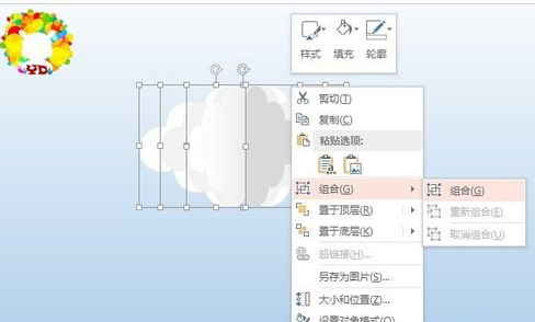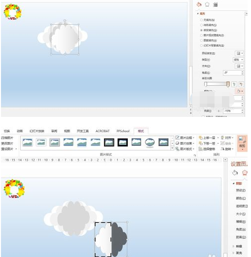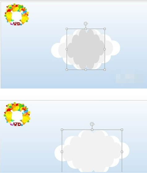 1)复制做好的云彩形状,粘贴出第二个,调整大小,层叠于第一个之上(如图);