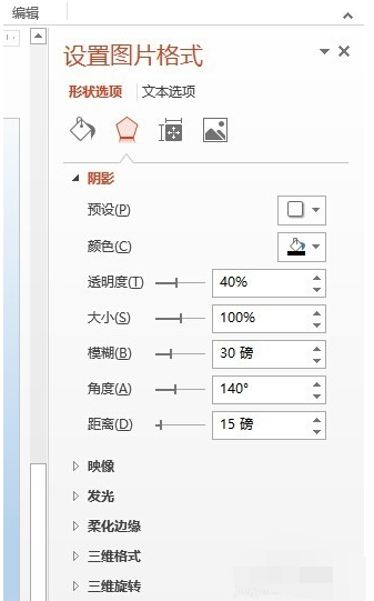2)鼠标右键——设置背景格式——修改透明度、模糊度、角度、距离。参数详见图片所示。