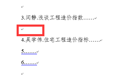 2.然后关闭word重启,看3和4之间是否有段落标记。如果显示有段落标记(如下图),则可以直接选中段落删除。