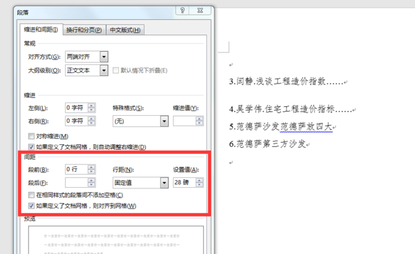4.选中1.2.3.4.5全部或全部段落,点鼠标右键,设置段落间距(如下图),段前段后都设置为0。点击确定关闭即可。